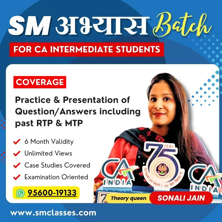 SM classes is committed to provide a perfect blend of Concepts Understanding, Application, Presentation under the guidance of Sonali Ma’am “Theory Queen” and that is why it is one of the best CA classes in Laxmi Nagar, Delhi.